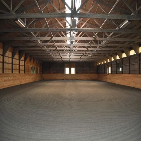 The indoor arena is 60'x120', with GGT footing allows you to train a year around in comfort, no matter the adverse weather conditions.
